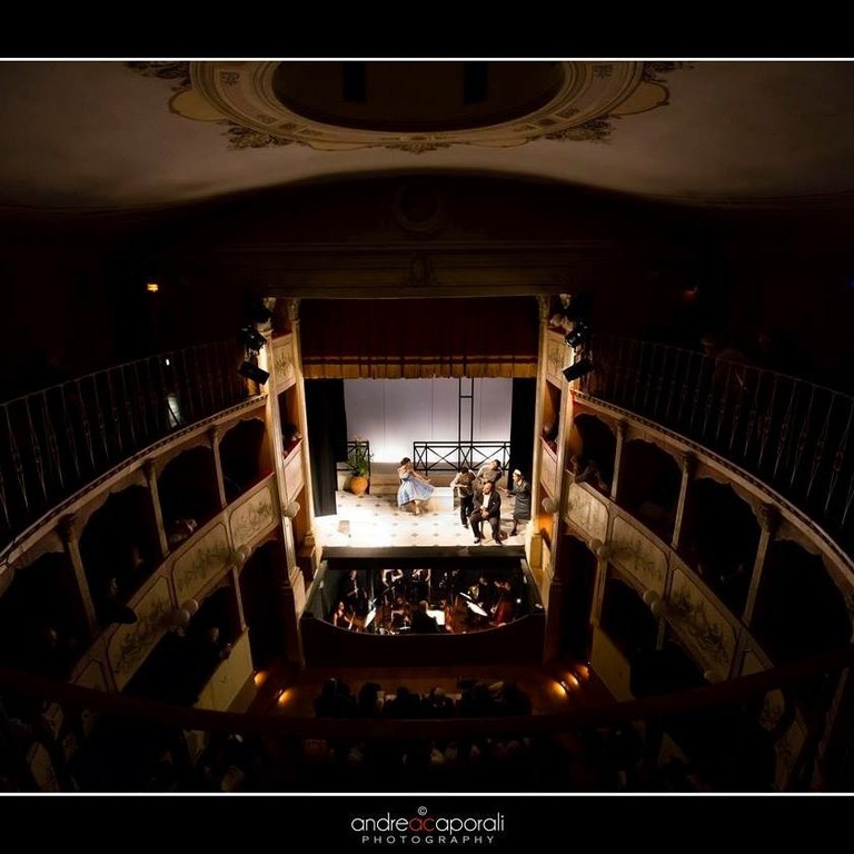 ordini, da Giovanni Caproni che ampliò il palcoscenico e sopra i palchi progettò un loggione con ringhiera di ferro fuso. Il pittore perugino Alceste Ricci ne decorò l’interno con ornati a