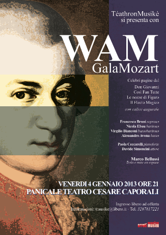 WAM, pièce lirico-teatrale per raccontare la vita del grande Mozart, un suono, una vampata, uno scherzo! Mozart fu suono, vampata e scherzo… giocando tra l’ironico e il tragico, il godurioso e il doloroso, l’angelico e il demoniaco.